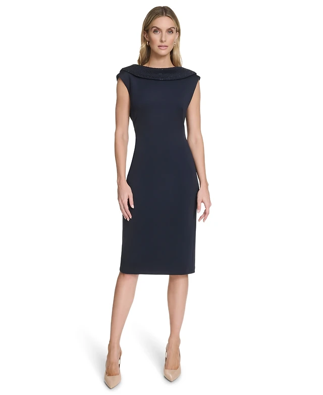 Maggy London Women's Crewneck Embroidered Midi Dress