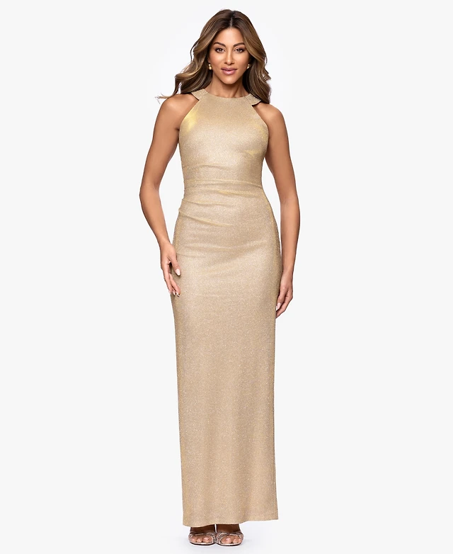 Betsy & Adam Women's Metallic Crinkle Ball Gown