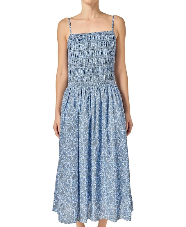 CeCe Women's Smocked Waist Flutter Sleeve Maxi Dress