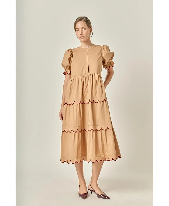 English Factory Women's Print Puff Sleeve Midi Dress