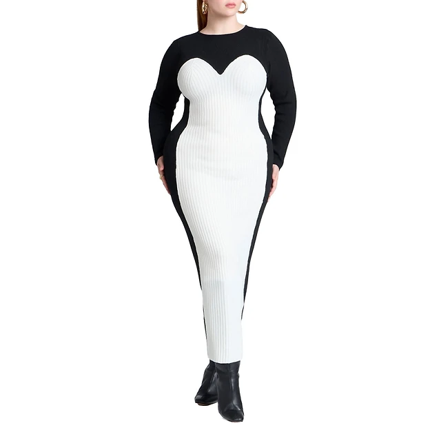 Buxom Couture Women's Plus Maxi Stripe Shirt Dress