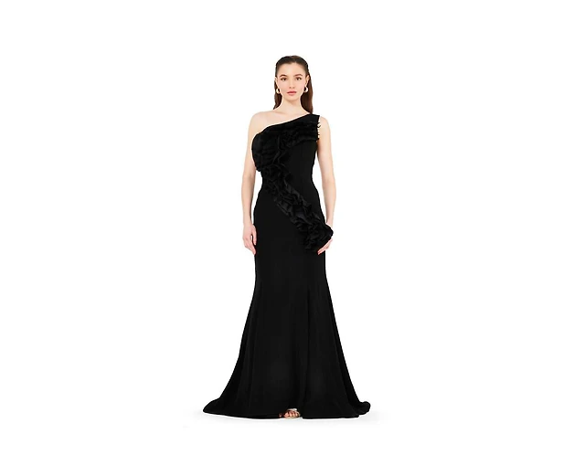 Xscape Women's One-Shoulder Side Ruffle Long Dress