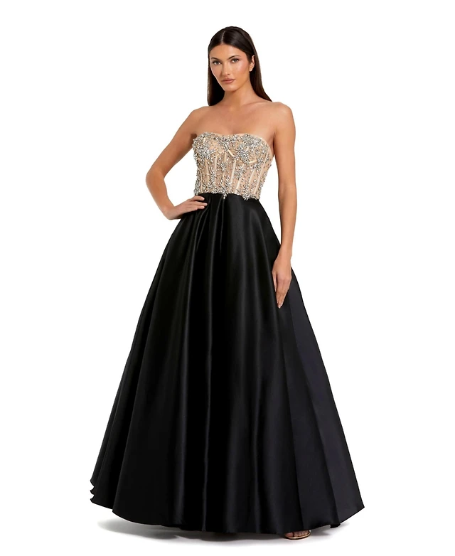 Lara Women's Long Sleeve Queen Anne Beaded Gown