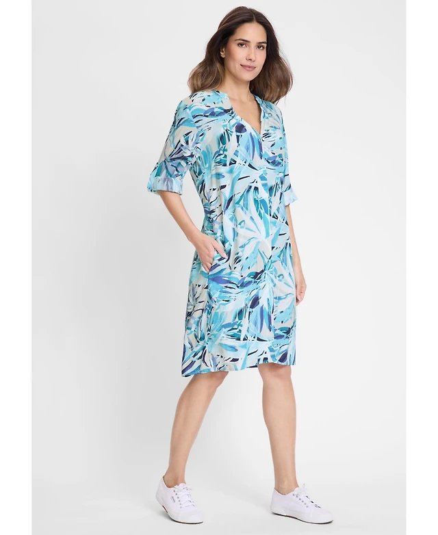 Luxely Women's Printed Raglan-Sleeve V-Neck Midi Dress