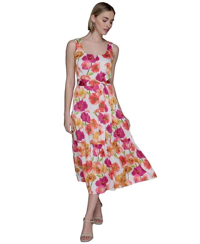 Kenneth Cole Women's Printed Side-Twist Sleeveless Midi Dress