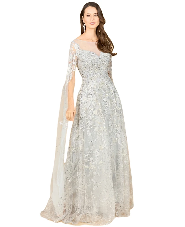 Lara Women's Long Sleeve, High Neck Beaded Gown - Outlet