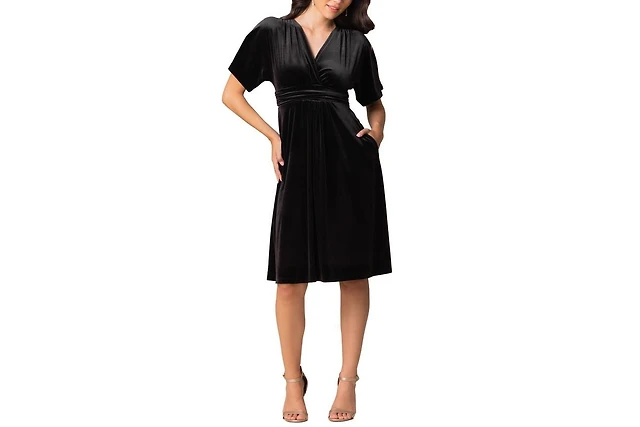 Msk Women's Short-Sleeve V-Neck A-line Dress