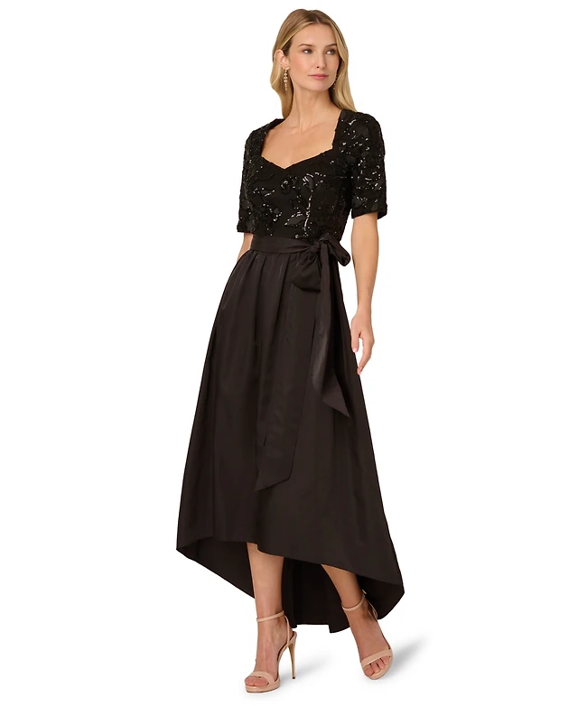 Mac Duggal Women's High Neck Lace Embroidered Detail Gown