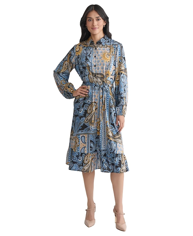 Jones New York Women's Collared Paisley Tie-Waist Shirtdress
