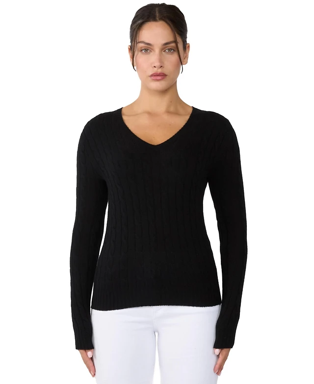 Nautica Jeans Women's V-neck Cable Knit Sweater, Online Only