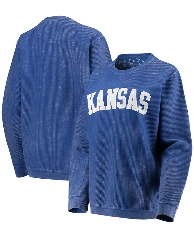 Women's Royal Kansas Jayhawks Comfy Cord Vintage-Like Wash Basic Arch Pullover Sweatshirt