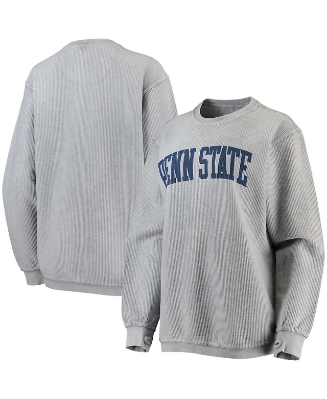 Women's Gray Penn State Nittany Lions Comfy Cord Vintage-Like Wash Basic Arch Pullover Sweatshirt