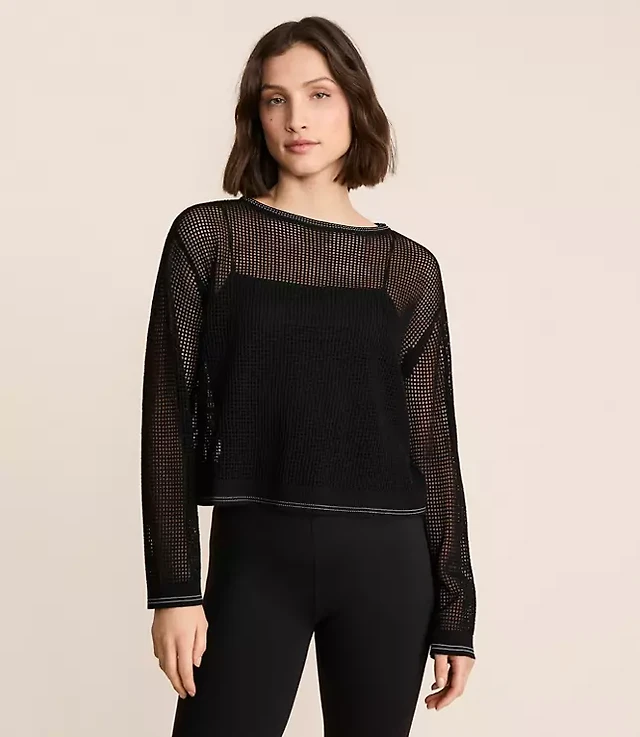 BELL SLEEVE POINTELLE KNIT SWEATER