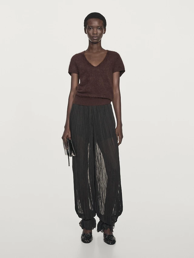 Shimmer Ribbed Flare Sleeve Off The Shoulder Sweater