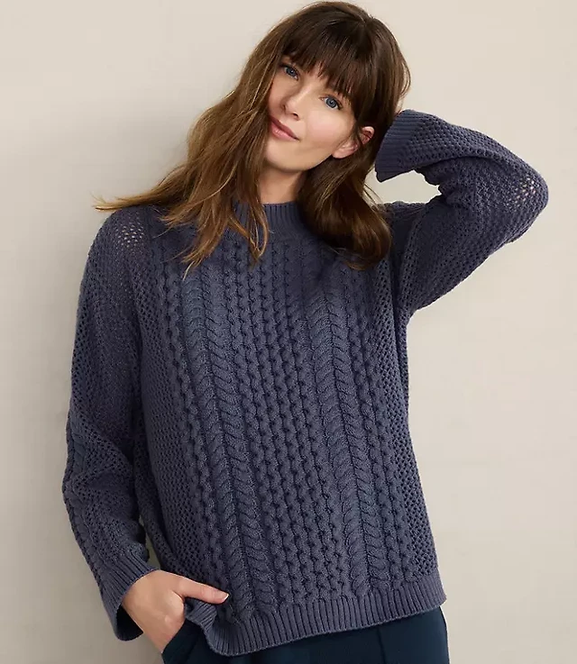 Cotton Tipped Open Stitch Dolman Sweater