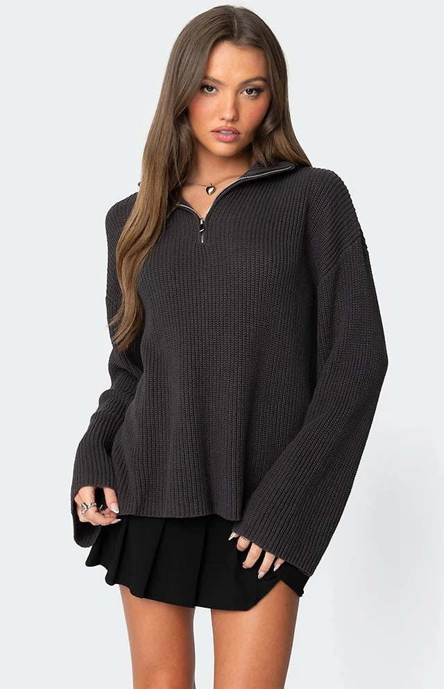 Edikted Kris Ribbed Knit Zip Up Sweater