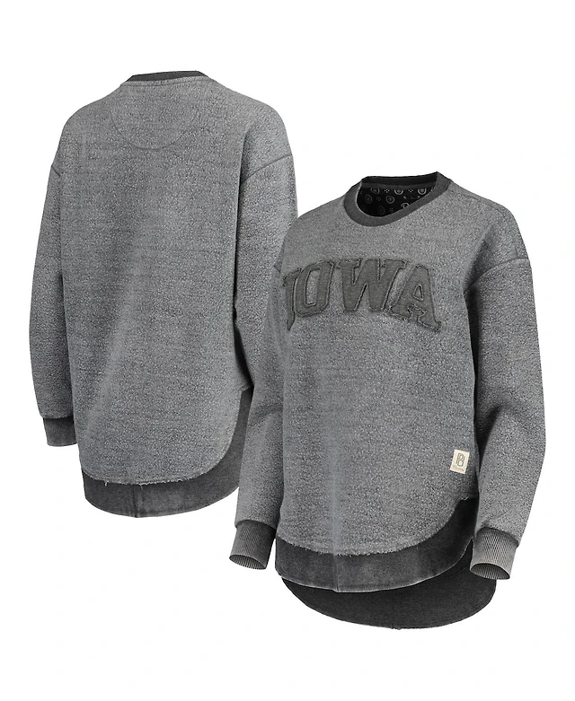 Women's Pressbox Black Distressed Iowa Hawkeyes Ponchoville Pullover Sweatshirt