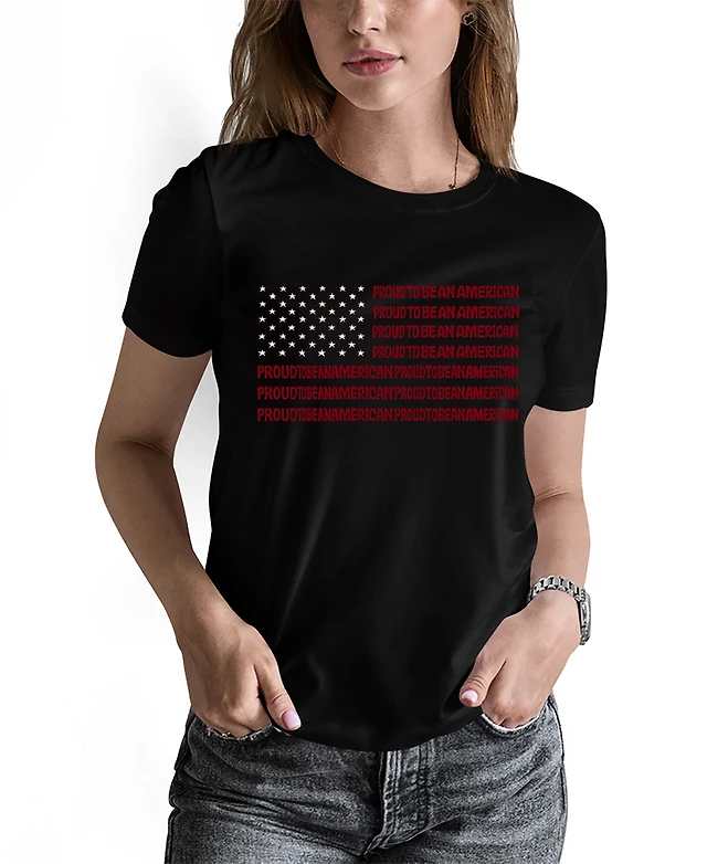 La Pop Art Women's Land of the Free American Flag Word V-neck T-shirt