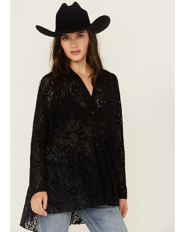 Lucky Brand Women's Lace-Trim Button-Down Cotton Shirt