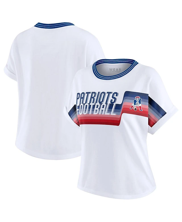 Wear by Erin Andrews Women's White New York Jets Cropped Center Stripe Dolman T-Shirt