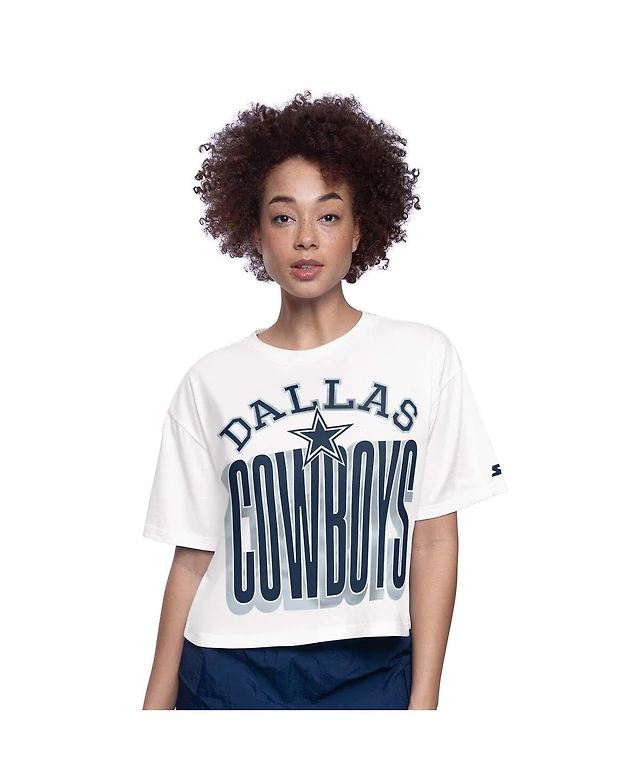 The Wild Collective Women's Cream Dallas Cowboys Drop Shoulder Oversized Boyfriend T-Shirt