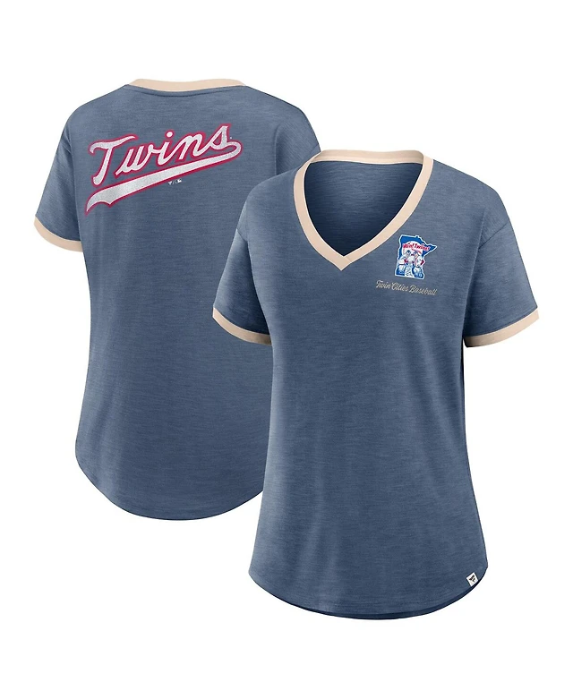 Fanatics Women's Navy Minnesota Twins Binge Worthy Stadium Slub V-Neck T-Shirt