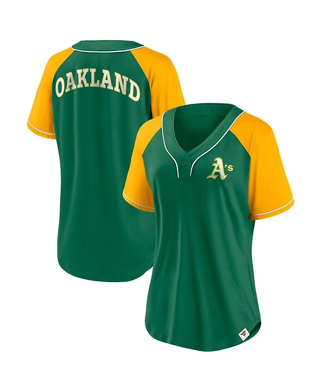 Fanatics Women's Green Oakland Athletics Cooperstown Collection Bunt Raglan V-neck T-Shirt