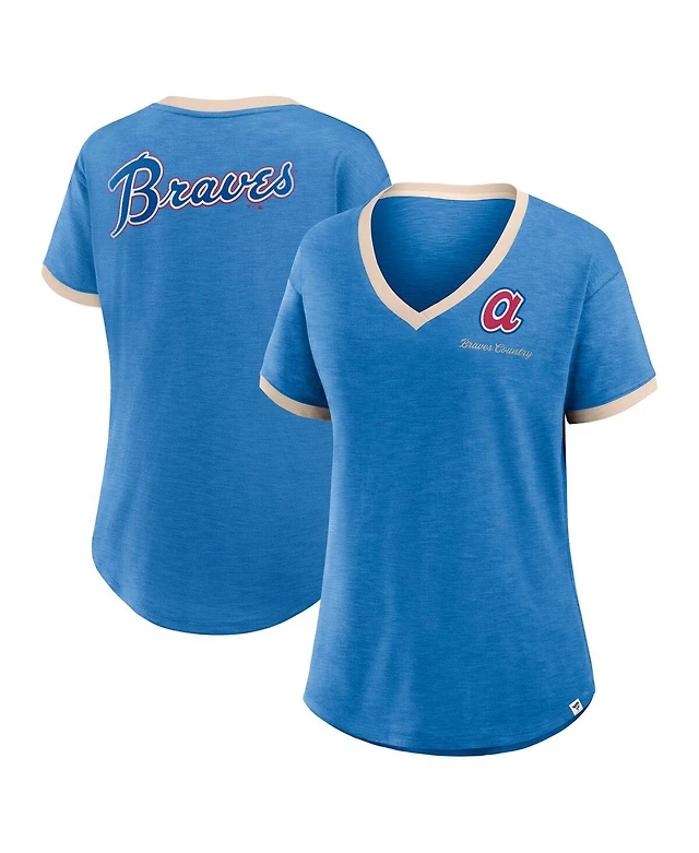 Fanatics Women's Royal Atlanta Braves Binge Worthy Stadium Slub V-Neck T-Shirt