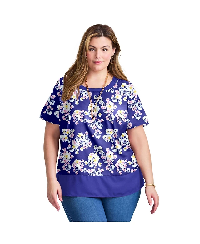 Eloquii Women's Asym Zipper Neck Polo Shirt