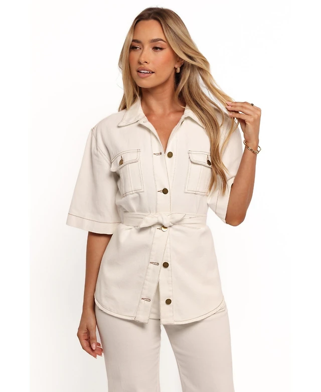 WeWoreWhat Women's Oversized Crochet Button-up Shirt