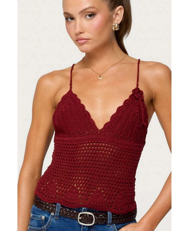Edikted Women's Delila Crochet V Neck Top
