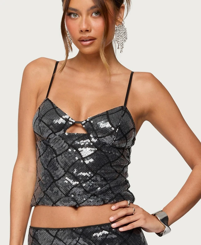 Edikted Women's Sequin Lace Split Front Backless Top