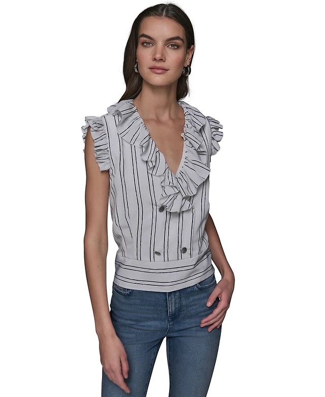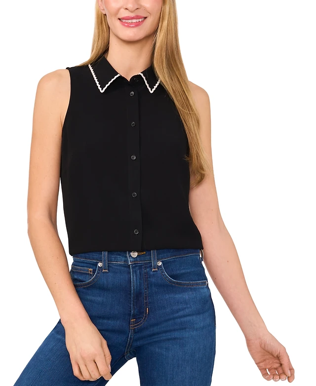 Avec Les Filles Women's Sleeveless Button-Front Top