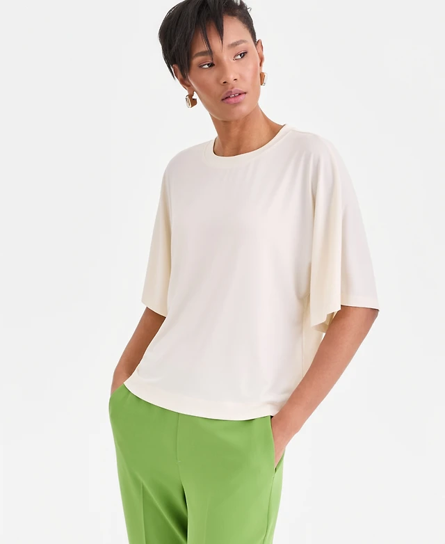 Anne Klein Womens Flutter Sleeve Lace Trim Top Drawstring Pants