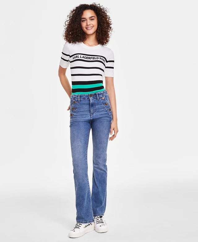 Karl Lagerfeld Paris Women's Rhinestone-Stripe Straight-Leg Jeans