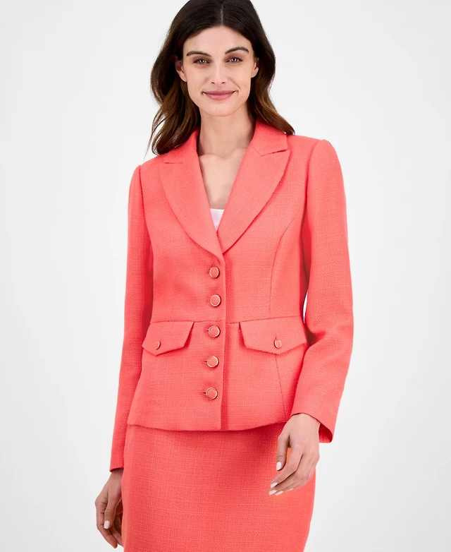 Anne Klein Women's Check-Print Peak-Lapel Three-Pocket Jacket