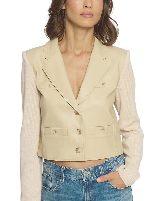 Central Park West Women's Faux Leather X Sweater Bomber Jacket