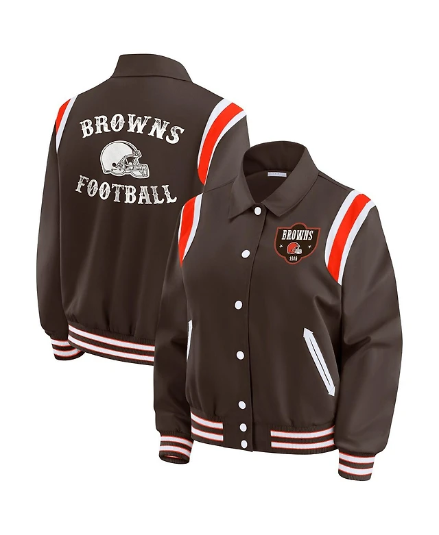 Starter Women's Brown/Orange Cleveland Browns Zone Blitz Cropped Full-Snap Satin Jacket