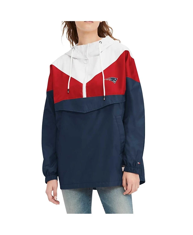 Women's Tommy Hilfiger White, Red New England Patriots Staci Half-Zip Hoodie Windbreaker Jacket