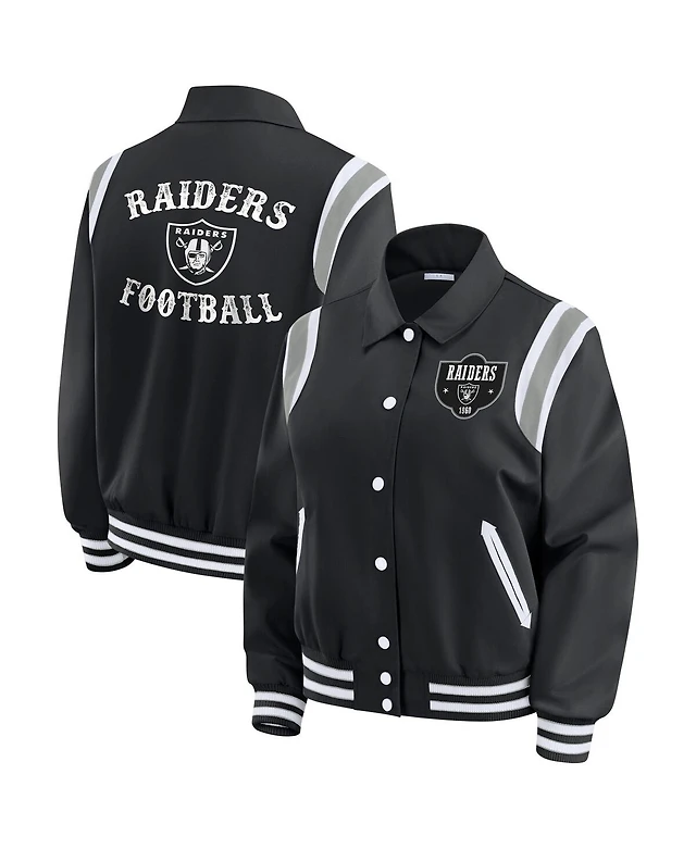 Starter Women's Black/Silver Las Vegas Raiders Zone Blitz Cropped Full-Snap Satin Jacket