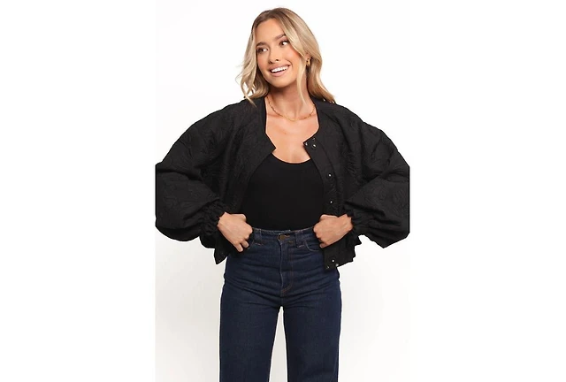 METALLIC THREAD TEXTURED BOMBER JACKET