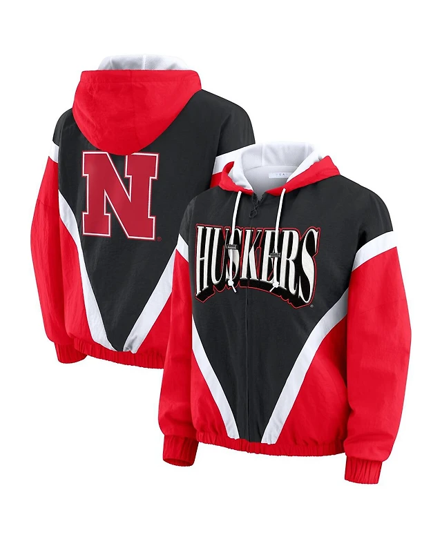 Wear by Erin Andrews Women's Denim Nebraska Huskers Sleeve Hit Color Block Button-Down Jacket