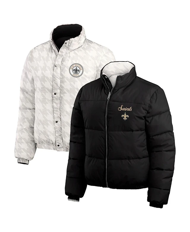 Wear by Erin Andrews Women's Black/White New Orleans Saints Reversible Cropped Full-Zip Puffer Jacket