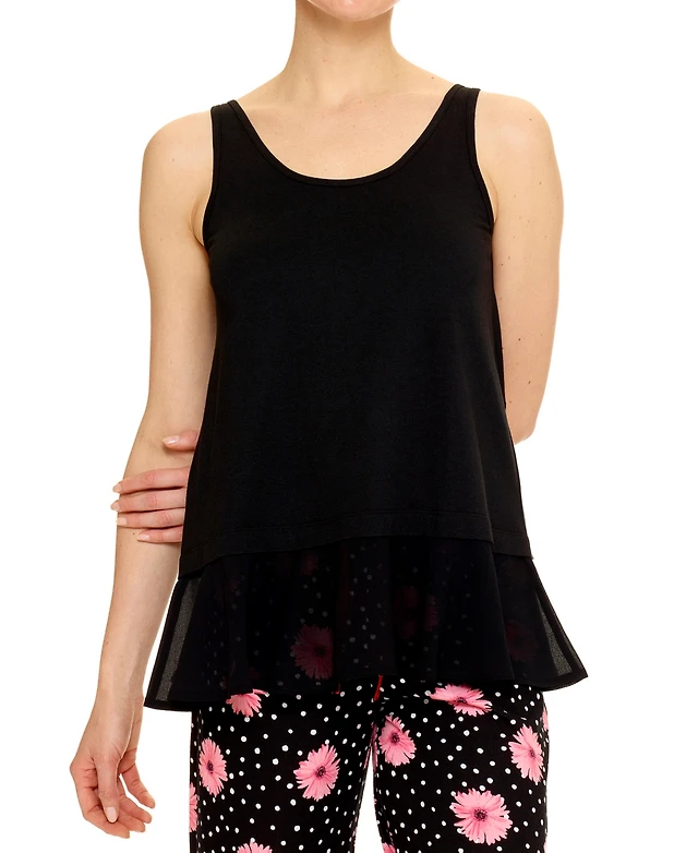 Ann Taylor Floral Mixed Media Tank Top Black Women's
