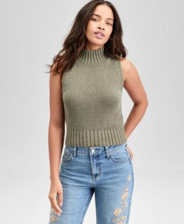 Bar Iii Women's Short-Sleeve Mock Neck Sweater, Macy's Exclusive