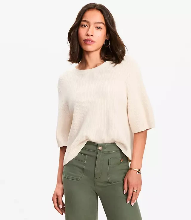Ann Taylor Haven Well Within Organic Cotton Mock Neck Sweater Ivory Women's