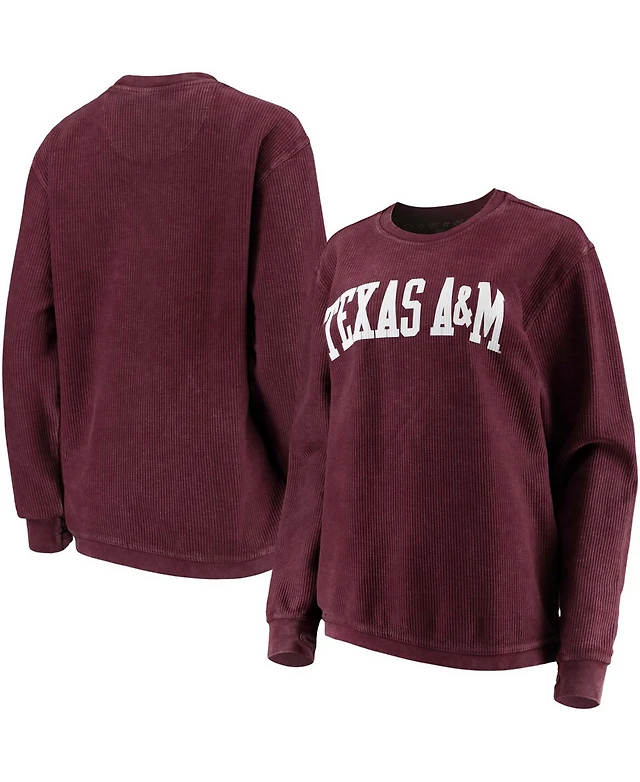 Women's Pressbox White Distressed Georgia Bulldogs Comfy Cord Vintage-Like Wash Basic Arch Pullover Sweatshirt