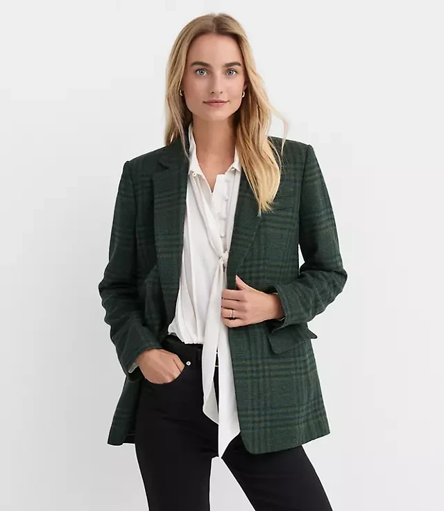LOFT Versa Plaid Seasonless Stretch Double Breasted Blazer