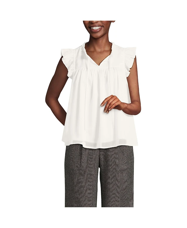 Ann Taylor Lace Ruffle Trim Blouse Winter White Women's