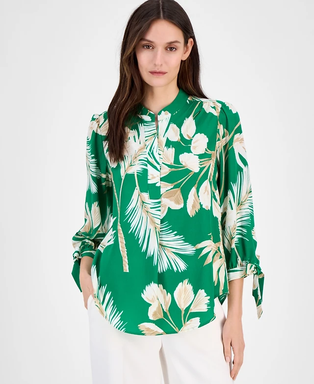 Jones New York Women's Paisley-Print Tie-Sleeve Blouse